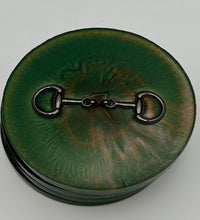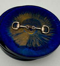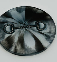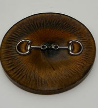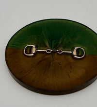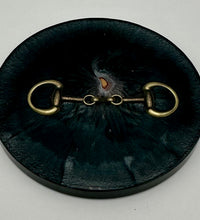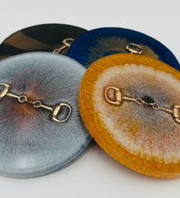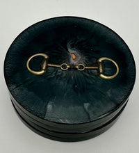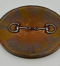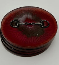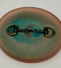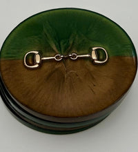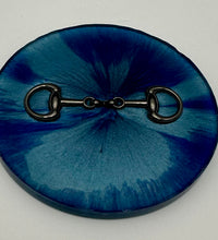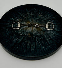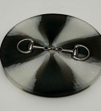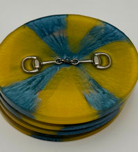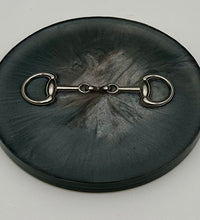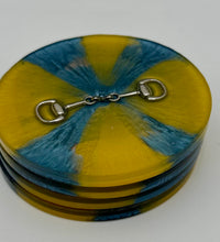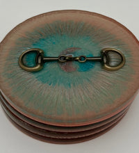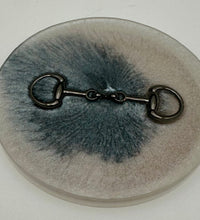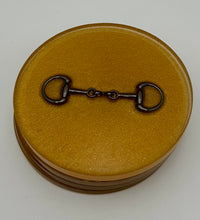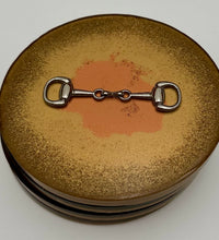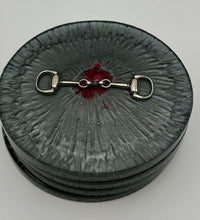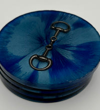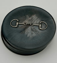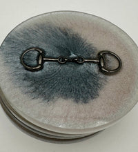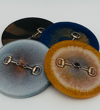 Add a touch of equestrian elegance to your home with this set of four handcrafted resin coasters, each featuring a striking bridle bit inlay. These coasters are more than just functional additions to your décor; they're a statement piece, reflecting a passion for equestrian style and handcrafted artistry.Bring the timeless beauty of equestrian design to your living space. The set of coasters are hand poured in our studio. Horse bridle bits are inlaid in each coaster. Coaster is backed with cork. Approximate size - 5 inches round, 1.5 lbs