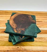 Elevate your home decor with this unique set of four Black Walnut end grain and Resin Coasters. Handcrafted with reclaimed black walnut, each coaster features a vibrant resin inlay, creating a striking contrast between rustic wood and modern design. Perfect for protecting your surfaces while adding a touch of natural elegance to your living space. Ideal for gifting or personal use, these coasters are a conversation starter and a testament to artisan craftsmanship. Available in 9 Colors - Green, Black,Bronze, Blue, Gold, White, Copper, Black, Burgundy/Brown Mix, Green/Blue Mix