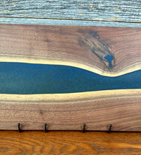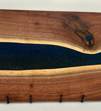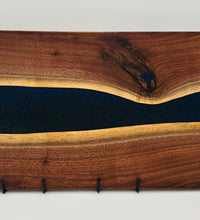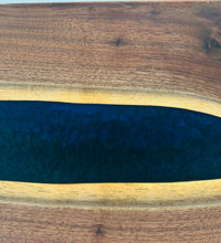 Elevate your entertaining with this stunning live-edge black walnut charcuterie board. Featuring a vibrant iceberg blue resin "river" and elegant...