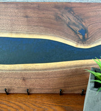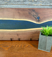 Elevate your entertaining with this stunning live-edge black walnut charcuterie board. Featuring a vibrant bonsai green resin "river" and elegant...
