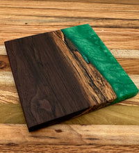 Elevate your home decor and protect your surfaces with these exquisite Handcrafted Black Walnut and Resin Coasters. Each coaster is a unique blend of natural black walnut wood, celebrated for its rich, deep tones and distinctive grain patterns, pared with a vibrant, high-gloss resin. The dynamic resin colors contrasts with the organic warmth of the wood, creating a functional piece of art for you home. Perfect for protecting tables from condensation while adding a touch of sophisticated, modern design. Sold as a set of four and individually handcrafted for a unique gift or stunning addition to you own living space. Available in several color schemes - Dark Gray, Red and Gold Swirl, and Bonsai Green